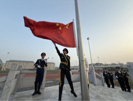 7时20分,升旗仪式正式开始。英姿飒爽的国旗护卫队迈着铿锵有力的步伐护卫国旗入场。在庄严的国歌声中,全体师生肃立行注目礼,凝视五星红旗冉冉升起,迎风飘扬。