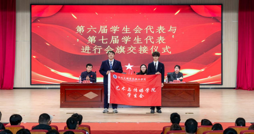 艺术与传媒学院第七届学生会指导老师夏奥炜宣读第七届学生会干部任命文件,第七届学生会代表朱锐汇报工作计划,明确未来服务方向。大会核心环节,新老学生会代表完成会旗交接,象征责任与使命的传递。最后,夏奥炜老师为学生会寄语,鼓励新成员以初心践使命,为学院发展贡献力量。此次大会不仅表彰先进树立榜样,更完成学生会新老交替,为学院学生工作注入新活力。