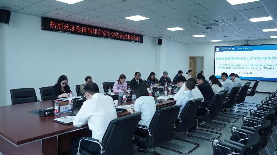 (发展规划部 王寅龙)5月23日,泰国南邦皇家大学校长吉蒂萨克・沙穆萨拉克(Kittisak Samuttharak)、学术事务副校长苏万尼·钱塔(Suwannee Chanta)、国际事务有关负责人一行来校访问。学校校长杨海浪会见来访代表团,副校长周伟及相关职能部门和二级学院负责人参加座谈。