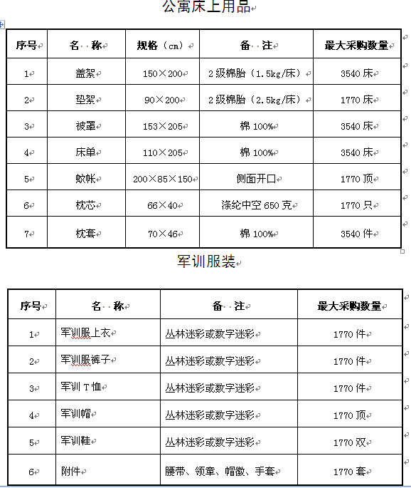 为满足新生生活及军训工作需要,伟德bv1946官网拟对学生公寓床上用品及军训服装采用邀请招标的方式采购,欢迎符合条件的供应商报名参加。公告如下: