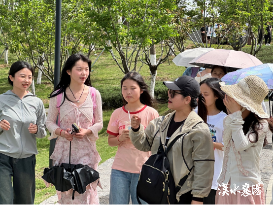 此次活动以襄水源公园“八景”为路线,途中两位外教老师与同学们热情交流,分享襄阳景色的文化背景知识、畅谈沿途的风光乐趣。 “瓮子桥”这一景点引起了两位外教老师的兴趣,同学们用流畅的英语向外教老师介绍了瓮子桥作为荆襄古道的历史故事。