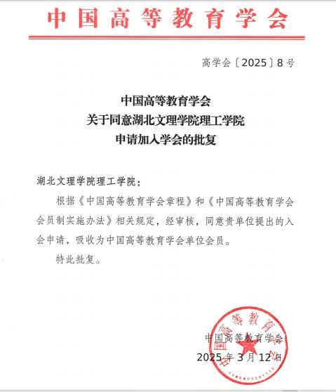 3月18日,我们收到中国高等教育学会的入会批复,正式成为这一全国性高等教育学术团体的会员单位。获批入会不仅是对学校办学实力的充分肯定,也为项目申报搭建了更广阔的学术交流与合作平台,开启了高质量发展新篇章。