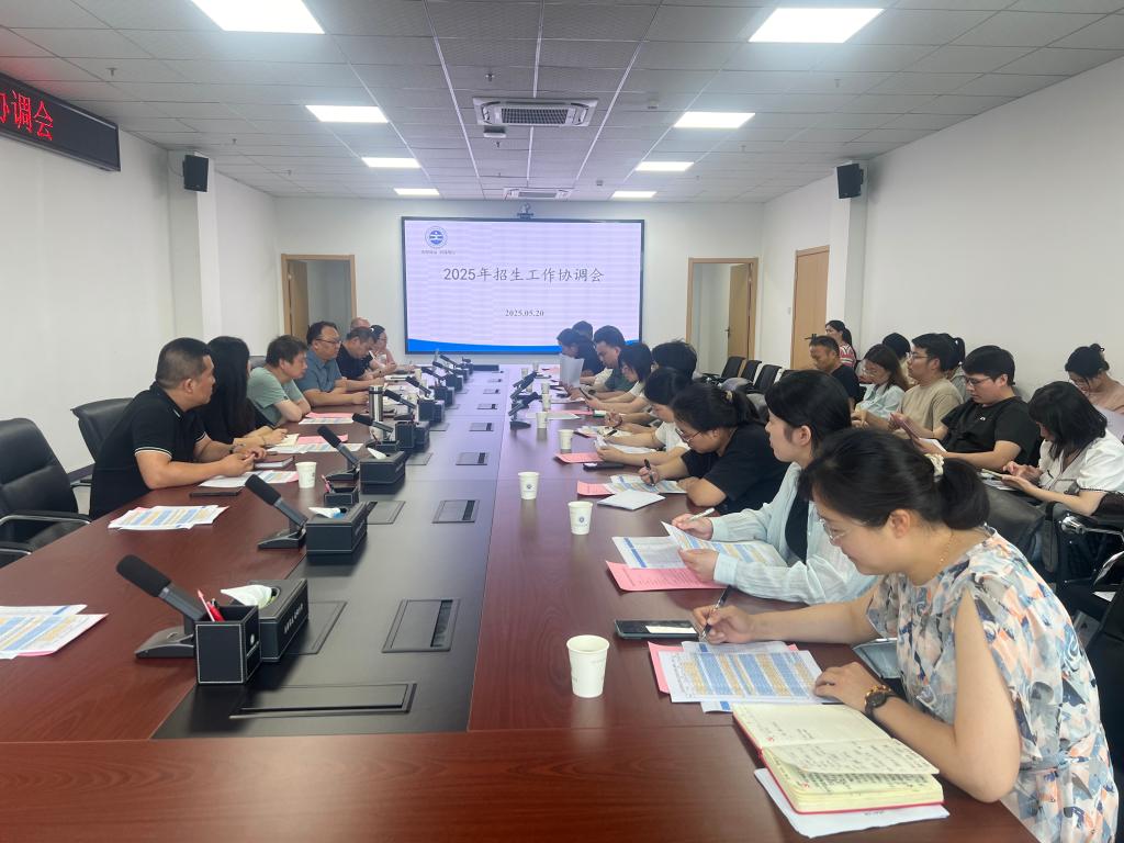 5月20日下午,学校在图书馆722会议室召开2025年招生工作协调会。副校长汪波、各二级学院负责人、各专业负责人、招生就业部全体人员参会。会议由招生就业部部长胡阳主持。